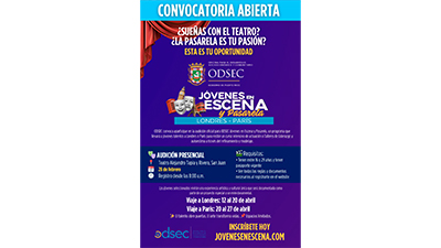 San Juan, Puerto Rico – Con un enfoque innovador en liderazgo juvenil, mentoría comunitaria y transformación social, la Oficina para el Desarrollo Socioeconómico de las Comunidades (ODSEC) anunció la apertura de audiciones para ODSEC Jóvenes en Escena: Royal Shakespeare – Londres, un programa internacional de formación teatral y de proyección escénica y talleres de modelaje dirigido a jóvenes talentos de las artes escénicas provenientes de hogares de bajo ingreso.