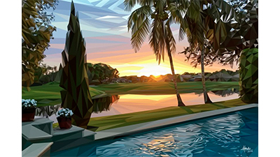 En este escenario internacional destaca la presencia del artista venezolano Alejandro Chávez, cuya obra explora con rigor y sensibilidad la relación entre luz, color y percepción. Radicado en Brookline, Massachusetts, Chávez presenta una propuesta visual basada en la descomposición geométrica del paisaje, donde cientos de triángulos articulan escenas que vibran según la mirada del espectador.