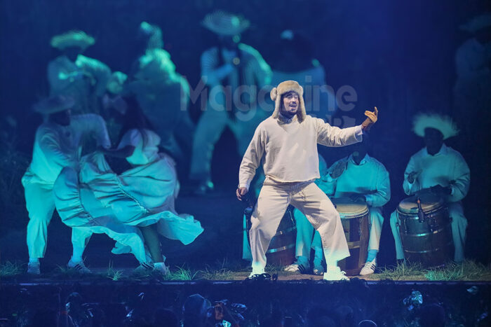 Benito no solo montó un show: construyó una experiencia para que locales y extranjeros vivieran como vive un puertorriqueño. Jíbaros vestidos de blanco se paseaban por el escenario, entre escenas cotidianas de la vida rural. Una verdadera fiesta de pueblo, en vivo y a todo color.