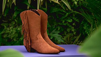 ● Tejidos, tramas y flecos que aportan movimiento y un acabado orgánico a sandalias, mocasines y botas.