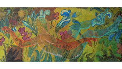 La muestra reunirá sobre treinta obras recientes que revelan el universo sincrético, vibrante y profundamente personal de Cancio, cuya paleta ha sido intensificada por su experiencia europea y su reencuentro con la exuberancia caribeña. Las piezas, que ocupan ambos niveles de la galería, componen un recorrido visual por su simbología tropical y espiritual, desde flamencos y flamboyanes hasta budas, santos y máscaras ancestrales.