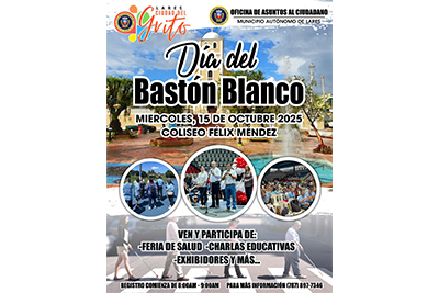 (Lares, Puerto Rico)– Por segundo año consecutivo, gracias a la iniciativa del Sr. Alexis López Nieves, quien convive con la condición de retinitis pigmentosa, se celebrará en el pueblo de Lares, el Día Internacional del Bastón Blanco, una actividad que busca visibilizar los derechos, capacidades y aportaciones de las personas ciegas. El evento tendrá lugar el miércoles, 15 de octubre, desde las 8:00 de la mañana, en el Coliseo Félix Méndez Acevedo de Lares, con la participación de decenas de entidades vinculadas a la discapacidad visual y la inclusión.