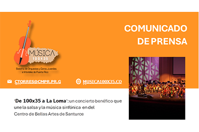 San Juan, Puerto Rico — — El Programa Música 100×35 del Conservatorio de Música de Puerto Rico anuncia con orgullo la presentación de su nueva producción titulada De 100×35 a La Loma, un concierto que rinde homenaje a la salsa desde el formato orquestal.