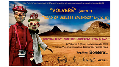 San Juan, Puerto Rico — La obra teatral Volveré de Deborah Hunt regresa a escena en una versión renovada que se expande en dos actos y se presenta junto a su secuela Road of Useless Splendor. Esta propuesta escénica reúne a tres generaciones de una misma familia de artistas de máscaras y títeres, trabajando juntos en una experiencia teatral por primera vez en Puerto Rico.
