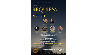 San Juan, PR – El Conservatorio de Música de Puerto Rico como parte de su serie de Conciertos en Familia, presentará Réquiem de Verdi bajo la dirección del maestro Roselín Pabón, el domingo 26 de abril a las 4:00 p.m. en la Sala Sinfónica “Pablo Casals” del Centro de Bellas Artes de Santurce.