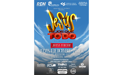 Durante el día de hoy, el Ministerio Luz Escénica anunció la apertura de una segunda función del musical Jesús, Mejor Que Todo, el jueves 11 de diciembre a las 7:00 p.m.. Han sido muchas las llamadas de personas que desean ver este musical que habla directamente sobre el significado del nacimiento de Jesús y el plan de salvación que Dios prometió desde la creación del mundo.