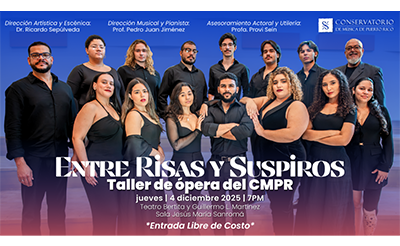 San Juan, PR – Bajo la dirección artística y escénica del Dr. Ricardo Sepúlveda, el Taller de Ópera del Conservatorio de Música de Puerto Rico presentará un concierto de escenas operísticas este jueves, 4 de diciembre de 2025, a las 7:00pm, en la Sala Jesús María Sanromá del Teatro Bertita y Guillermo L. Martínez del CMPR.