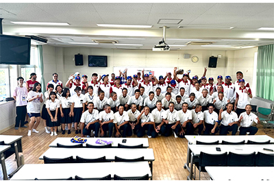 Durante aproximadamente una hora, los peloteros puertorriqueños compartieron en un conversatorio con estudiantes, incluyendo integrantes del equipo de béisbol de la escuela. En la actividad, los boricuas respondieron preguntas sobre su experiencia en el deporte y la cultura puertorriqueña, y a su vez, hicieron interrogantes a los estudiantes japoneses sobre su vida escolar, la gastronomía local, el béisbol y el karate. La dinámica estuvo marcada por la alegría, el respeto y la confraternización.