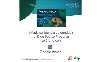 (San Juan, P.R.) – La gobernadora de Puerto Rico, Jenniffer González Colón, anunció el lanzamiento oficial de la identificación móvil (mDL) en Google Wallet para residentes de la isla. Con este paso, Puerto Rico se convierte en la octava jurisdicción de los Estados Unidos en ofrecer esta avanzada tecnología de identificación digital en la aplicación de Google Wallet. Se unieron al anuncio el secretario del Departamento de Transportación y Obras Públicas (DTOP), Edwin González, y el director interino del Puerto Rico Innovation and Technology Service (PRITS), Poincaré Díaz.