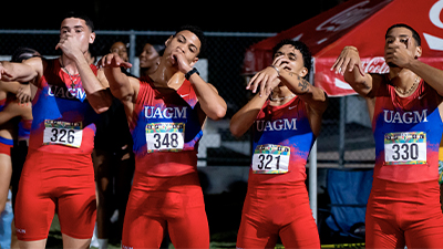 Sábado, 7 de marzo de 2026 (Villalba, Puerto Rico) – Recorrieron toda la pista Raúl Rodríguez este sábado para tirar sus veloces flechas hacia el público por la celebración de la marca establecida en los 4×400 metros masculinos, durante el Campeonato de Relevos de la Liga Atlética Interuniversitaria (LAI) en Villalba.