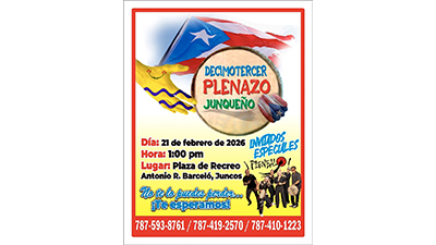 La cita es el sábado, 21 de febrero de 2026, desde la 1:00 de la tarde, en una jornada familiar cargada de ritmo, alegría y orgullo de pueblo, donde la plena será la gran protagonista. “El Plenazo Junqueño es una fiesta del pueblo, un espacio para celebrar quiénes somos y mantener viva nuestra cultura”, expresó el Primer Ejecutivo de Juncos.