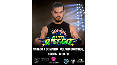 (Juncos, Puerto Rico)- La empresa Attitude Wrestling Academy (AWA) anuncia oficialmente su próximo gran evento, “Alto Riesgo”, el cual se celebrará el 7 de marzo de 2026 en el Coliseo Boxístico de Juncos. La cartelera promete una noche llena de intensidad, rivalidades explosivas y acción de primer nivel para los fanáticos de la lucha libre en Puerto Rico.