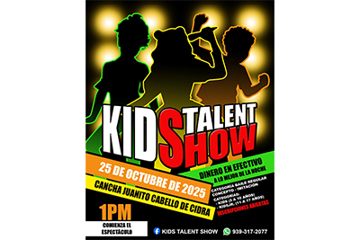 (Cidra, Puerto Rico)– Bajo la producción de Jorge Collazo Ortiz, se celebrará en la Cancha Juanito Cabello del pueblo de Cidra la primera edición del “Kids Talent Show”, un evento diseñado para resaltar el talento artístico de grupos, academias y solistas en Puerto Rico.