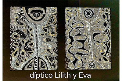 “El díptico Lilith y Eva es una representación pictórica en medio mixto sobre papel y trata de las primeras dos mujeres creadas de la mitología bíblica, dos arquetipos bíblicos de controversia y encanto. Lilith, creada con autonomía total al igual que Adán, fue la primera en ejercer su libre albedrío y la primera desaparecida de la humanidad bíblica”, puntualizó la artista y diseñadora industrial Nelly Toledo.