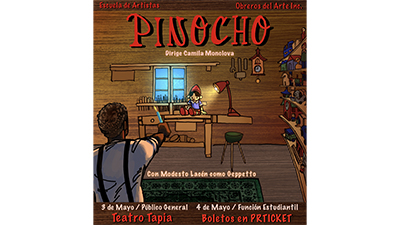 La Escuela de Artistas subirá a escena “Pinocho” en la adaptación teatral de la obra clásica Las Aventuras de Pinocho, los días 3 y 4 de mayo en el Teatro Alejandro Tapia y Rivera. La producción cuenta con la dirección de Camila Monclova y la producción de Félix Monclova junto a Obreros del Arte Inc.