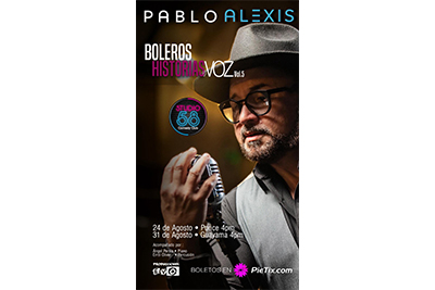 La parte musical la integran nuevamente los maestros: Ángel Persia en el piano y Errol Oliver en la percusión. La parte de los boleros abarcará un recorrido desde su nacimiento en Cuba, su esplendor en México y algunos de los grandes compositores puertorriqueños. Pablo Alexis: Boleros, Historias y Voz se ha presentado en distintos escenarios en y fuera de Puerto Rico. En los conciertos, el público podrá adquirir el libro del Dr. Pablo Alexis Santos-Sánchez, “Creación e interpretación del bolero: una aproximación desde la historia, la literatura y la performance”.
