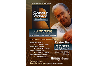 El próximo 26 de septiembre a las 19:30, el Teatro Bar de Madrid abrirá sus puertas para rendir tributo a la obra y la vida del compositor venezolano Henry Martínez, uno de los grandes referentes de la música latinoamericana. La ocasión será la presentación del libro “Cuerdas y versos de Henry Martínez”, escrito por la investigadora Norma Ansart.
