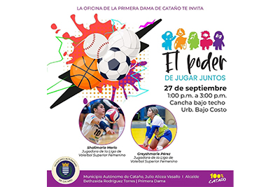 Cataño, Puerto Rico – La Oficina de la Primera Dama del Municipio Autónomo de Cataño anunció la celebración de la próxima edición de la exitosa iniciativa comunitaria “El Poder de Jugar Juntos”, a realizarse este sábado, 27 de septiembre, de 1:00 p.m. a 3:00 p.m. en la cancha bajo techo de la Urbanización Bajo Costo.