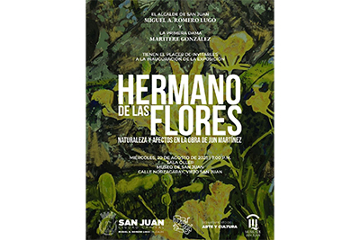 San Juan, Puerto Rico – El alcalde de la ciudad capital, Miguel A. Romero Lugo, anunció la apertura de la exposición “Hermano de las flores: naturaleza y afectos”, del pintor puertorriqueño Jun Martínez, que se inaugurará mañana miércoles, 20 de agosto, a las 7:00 p. m., en la Sala Francisco Oller del Museo de San Juan. La muestra, organizada por el Departamento de Arte y Cultura junto a esta institución cultural, reúne una veintena de obras al óleo en las que el artista explora su relación con la naturaleza puertorriqueña.