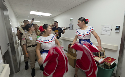 A este gesto solidario se sumó el PR Youth Challenge Academy, bajo la dirección de Cindy Villarraga, cuyos jóvenes llenaron el espacio de energía contagiosa, ritmo y baile, regalando sonrisas sinceras y renovando el ánimo de todos los presentes.