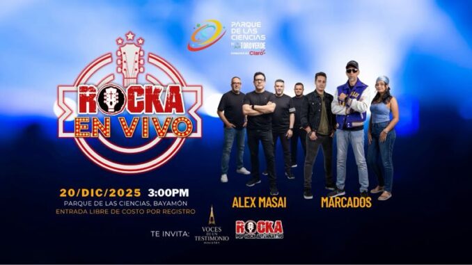 El próximo sábado, 20 de diciembre de 2025, el Parque de las Ciencias en Bayamón se convertirá en el epicentro de un evento único: un encuentro musical donde el mensaje de fe se fusiona con la fuerza del Pop Rock Alternativo, en una experiencia pensada para tocar el alma y elevar el espíritu.