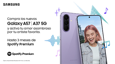 SAN JUAN, Puerto Rico, País, abril de 2026- Samsung anuncia una alianza con Spotify, la plataforma de streaming musical más grande del mundo, en una colaboración en América Latina que ofrece hasta tres meses de Spotify Premium[1] para los consumidores que adquieran los nuevos Galaxy A57, Galaxy A37, Galaxy A1 y Galaxy A07, colocando la música en el centro de la experiencia de la nueva línea Galaxy A. Spotify Premium garantiza acceso a música sin anuncios, descargas para escuchar offline y más libertad para elegir qué escuchar en cualquier momento.