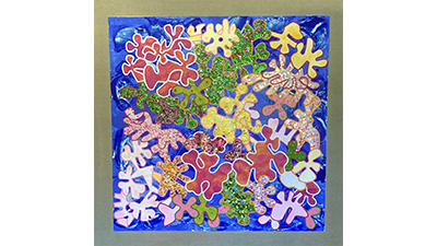 Una vez aplicados los pigmentos, Flores Charneco interviene la pieza una vez más, aportando destaque, brillo y textura a determinados elementos al bordar lentejuelas, mostacillas y canutillos. “Al proceso le llamo ‘painterly’, una manera de combinar varios tonos mediante estos elementos que no son pintura que crean otras sensaciones, otros efectos lumínicos de color y textura. La riqueza se da al combinar distintos tonos”. Esa manifestación la podrá apreciar el público que llegue a Galería Petrus en piezas como “Vi el mar”, “Alegoría floral: verde” y “Alegoría floral: azul” y “Pasión infinita”, entre otras, realizadas en diversos formatos.