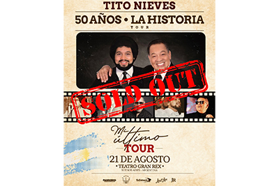Buenos Aires, Argentina, – El legendario salsero Tito Nieves celebró otro un Sold Out más y esta vez  en el Teatro Gran Rex de Buenos Aires, uno de los recintos más icónicos de Argentina, como parte de su gira internacional “50 Años – La Historia”.