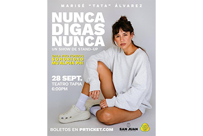 San Juan, Puerto Rico;- – La querida actriz y comediante, Marisé “Tata” Álvarez, presentará su stand-up comedy “Nunca Digas Nunca” el domingo, 28 de septiembre de 2025, a las 6:00 p.m. en el histórico Teatro Tapia del Viejo San Juan. En esta función especial Marisé nos cuenta sobre sus mayores contradicciones y sus más recientes aventuras de joven adulta en sus 40’s.