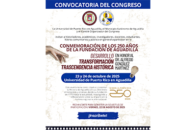 Este congreso representa una oportunidad única para reflexionar colectivamente sobre el legado de Aguadilla y su proyección histórica, regional e internacional. La Universidad de Puerto Rico en Aguadilla se honra en liderar este evento académico de gran relevancia para el país.